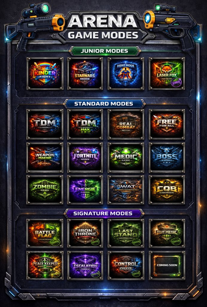 és lézerharc bajnokságokat szervezünk, ahol egyszerre játszunk mindkét pályánkon.
