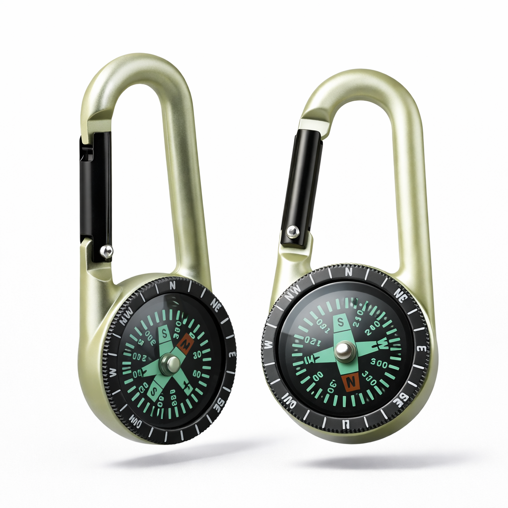 Praktikus karabiner beépített iránytűvel, amely segít a tájékozódásban. Ideális kiránduláshoz, túrázáshoz vagy mindennapi használatra. Könnyen rögzíthető táskára vagy övre. Hasznos és stílusos kiegészítő egyben.
