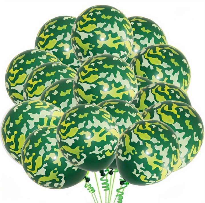 10 db-os vidám és látványos lufiszett terepmintás dizájnnal. Könnyen felfújható és jól kombinálható más dekorációkkal. Ideális választás gyerekzsúrokhoz vagy katonai témájú eseményekhez.